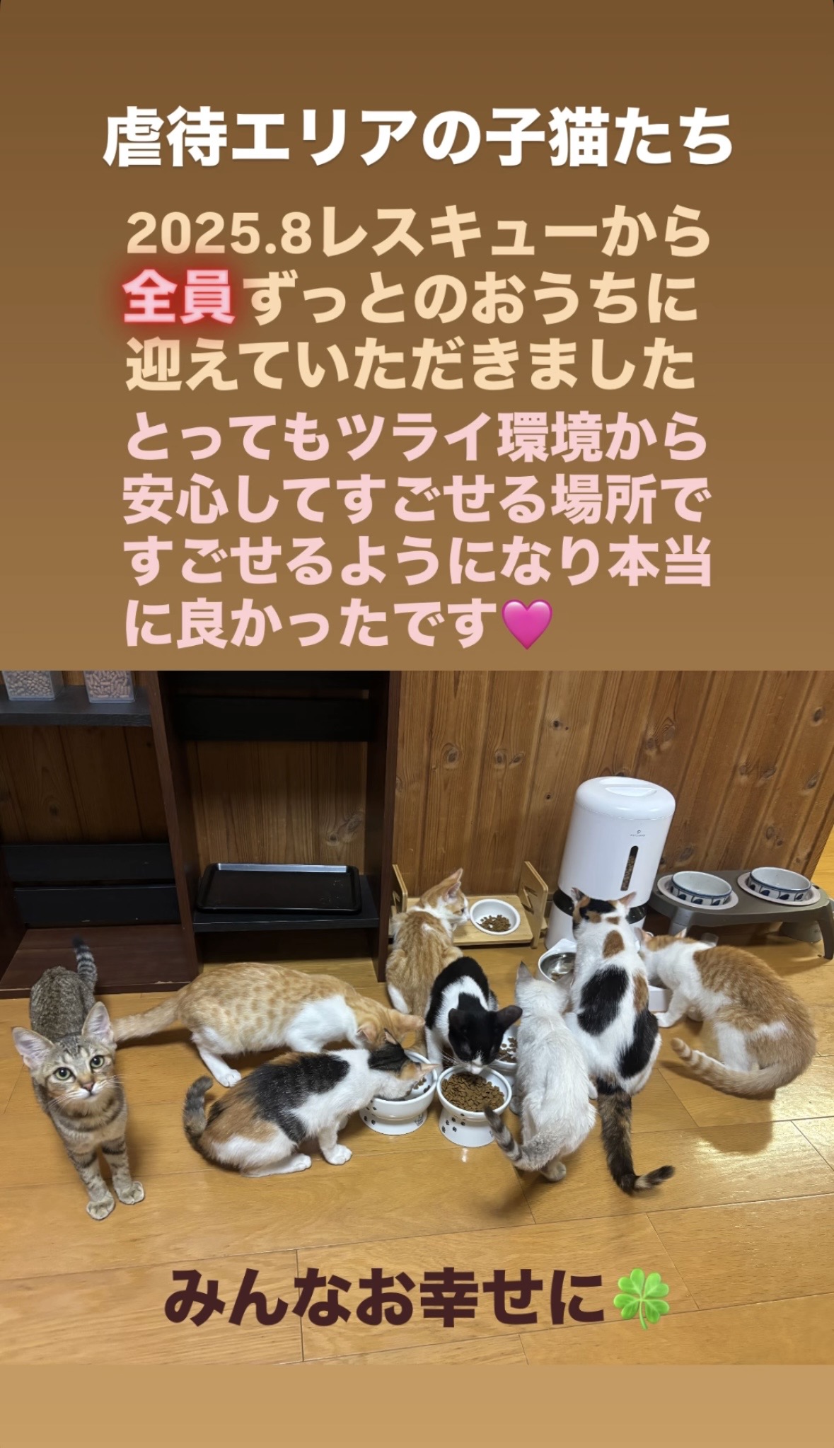 2025.8に発覚した虐待エリアより順番にレスキューし、ご縁があった保護猫ちゃんから譲渡させていただいてきました。